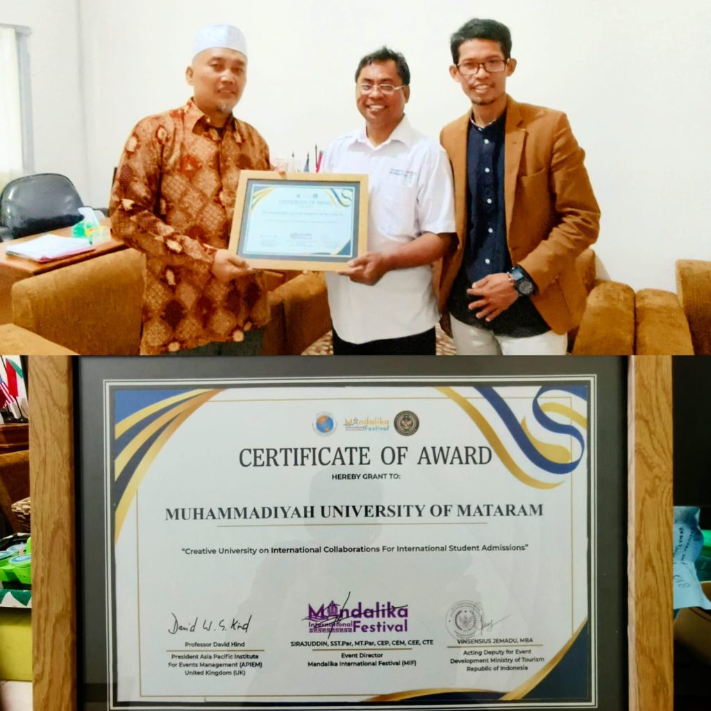 Mataram, Universitas Muhammadiyah Mataram (UMMAT) kembali menorehkan prestasi membanggakan di tingkat global dengan meraih penghargaan internasional bertajuk “The Creative University on International Collaborations for International Student Admissions.” Penghargaan ini diberikan atas keberhasilan UMMAT dalam mengembangkan kerja sama internasional yang inovatif, kreatif, dan berkelanjutan, khususnya dalam penguatan strategi penerimaan mahasiswa internasional.